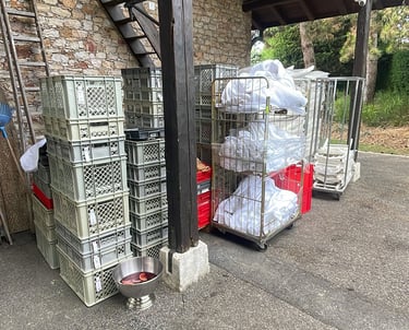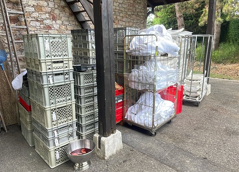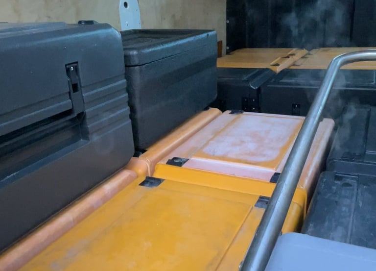 Bacs isothermes garantissant la température des repas durant le transport.